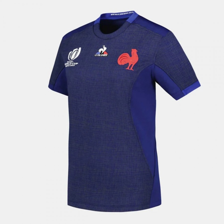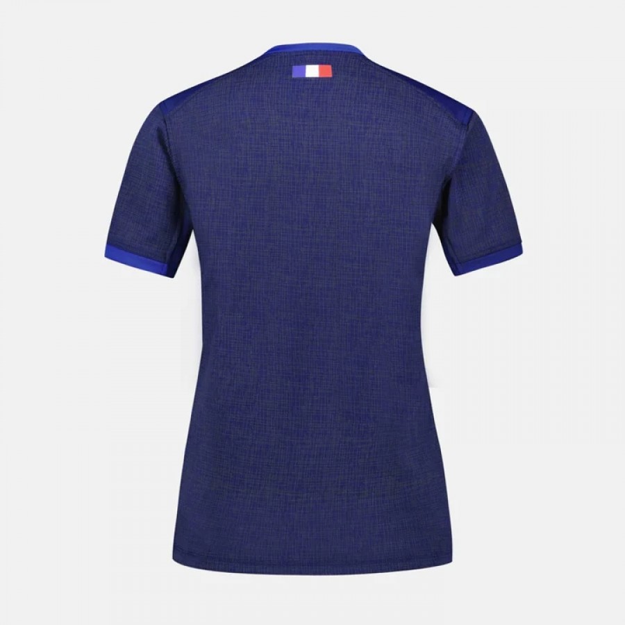Discover the official women's home jersey of the 2023 Rugby World Cup. It features the same design as the one worn by the players in a dynamic new blue. Made from a breathable and durable material, this jersey features a pattern inspired by the special weaving technique used by the players of the French national team and is the result of Le Coq Sportif's know-how. Because together, driven by a people, we will shout and support the French national team in 2023. To the beating of our hearts, to the sound of the impacts, to the rhythm of the passes, to the cries of joy, we will vibrate. At home, carry our Blues to victory!